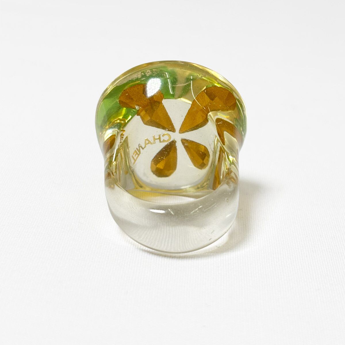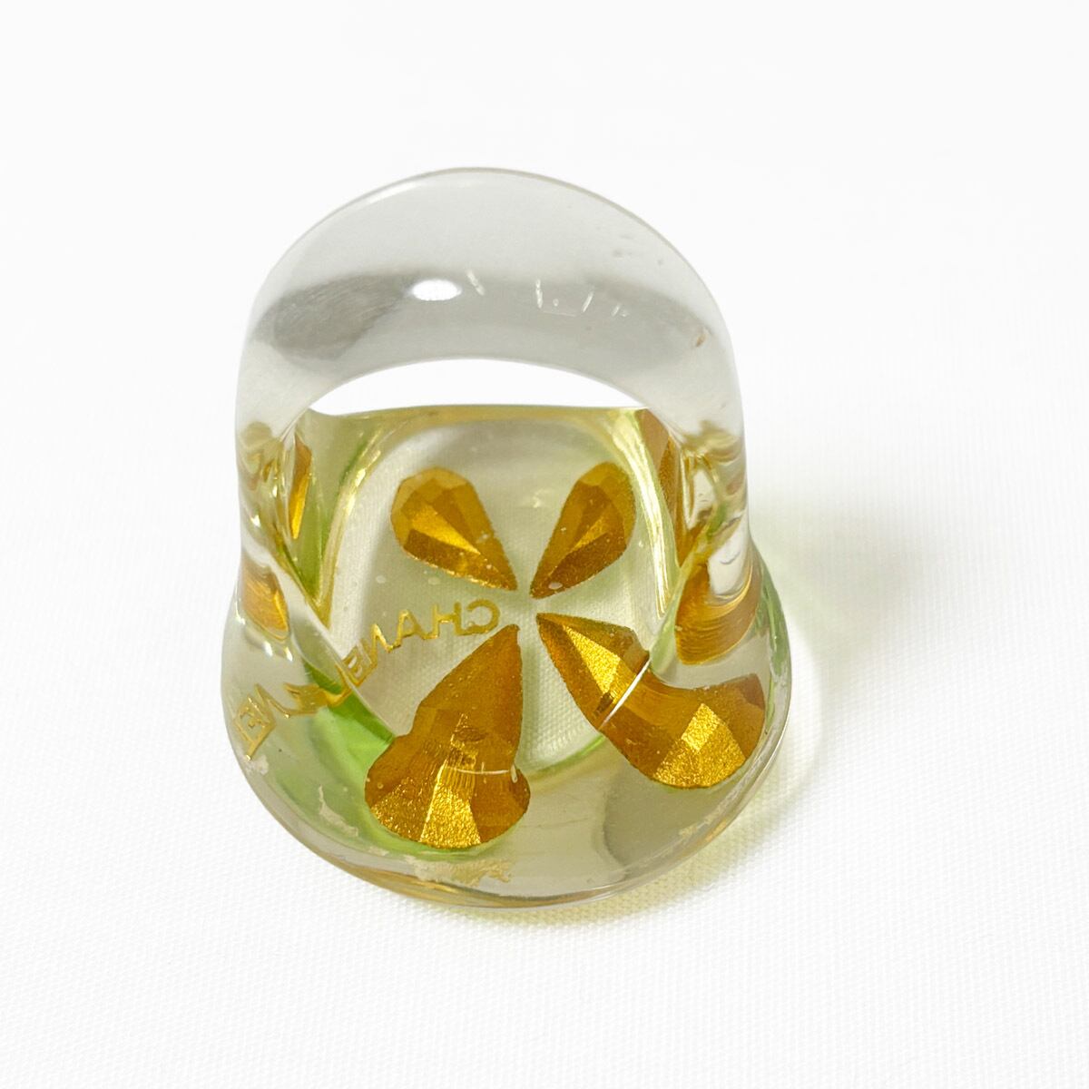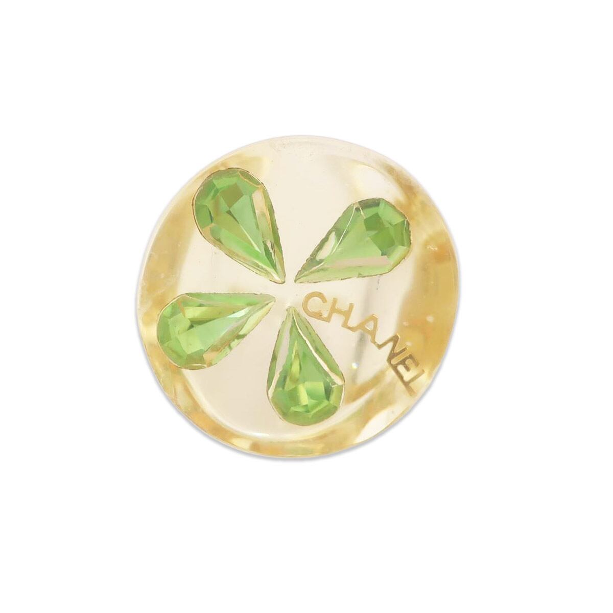 レジンの中にキラキラと輝く四葉のクローバーとCHANELのロゴが埋め込まれています。
