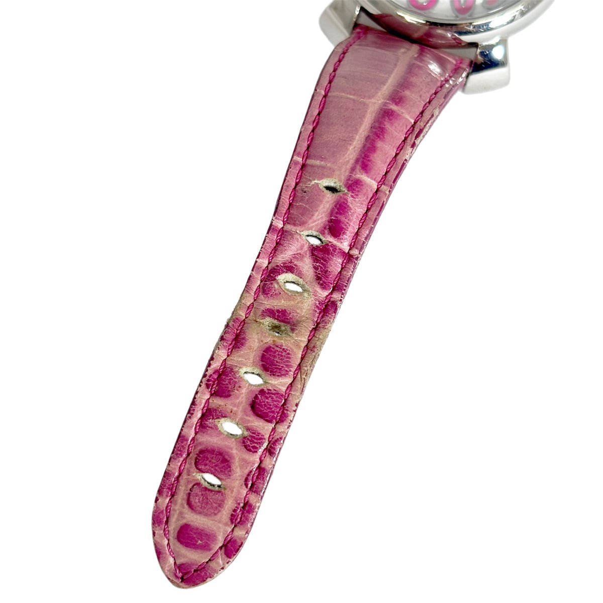 ・バンド(レザー)に強い劣化が見られます。ひび割れ、変色、使用感があり、交換前提でのご検討をおすすめします。