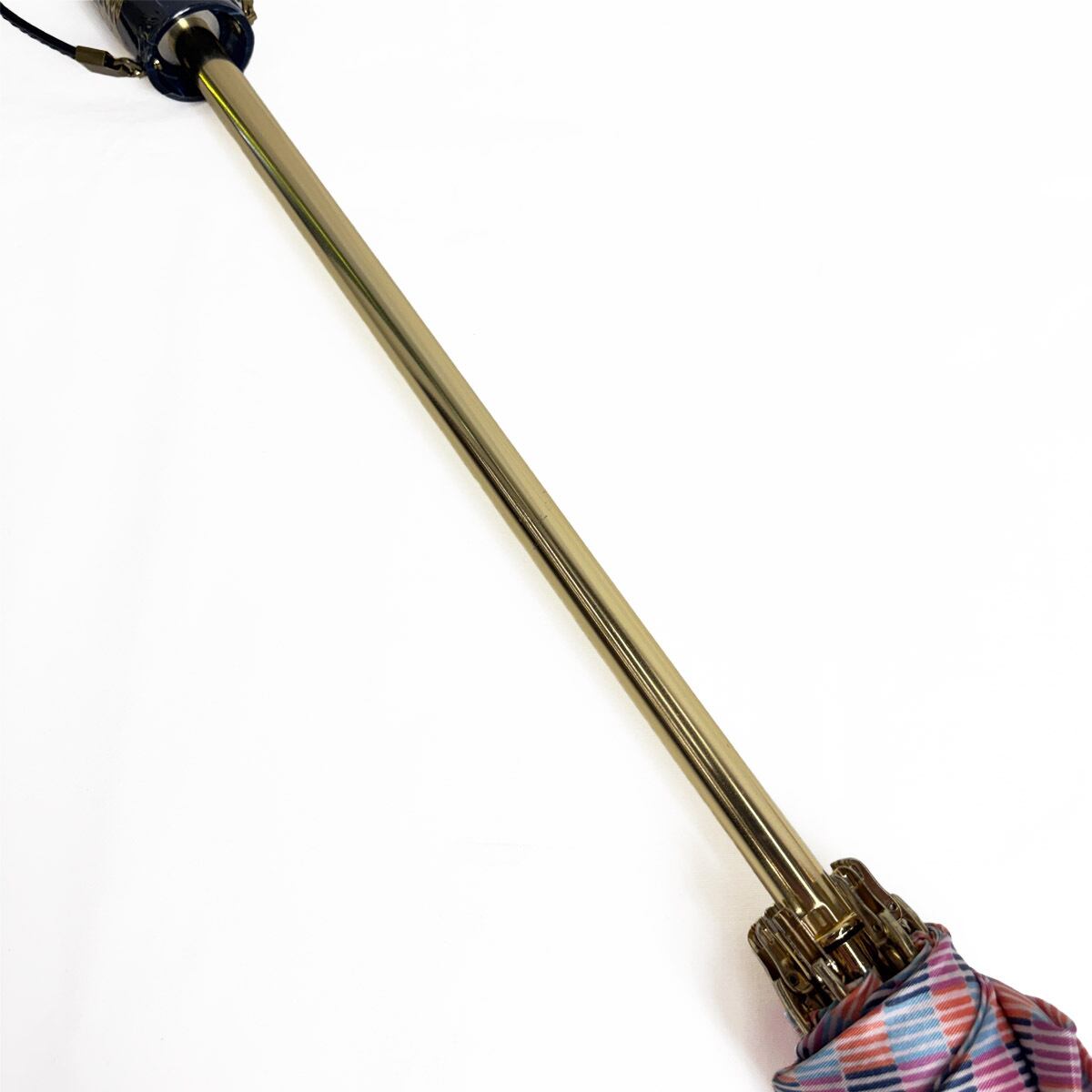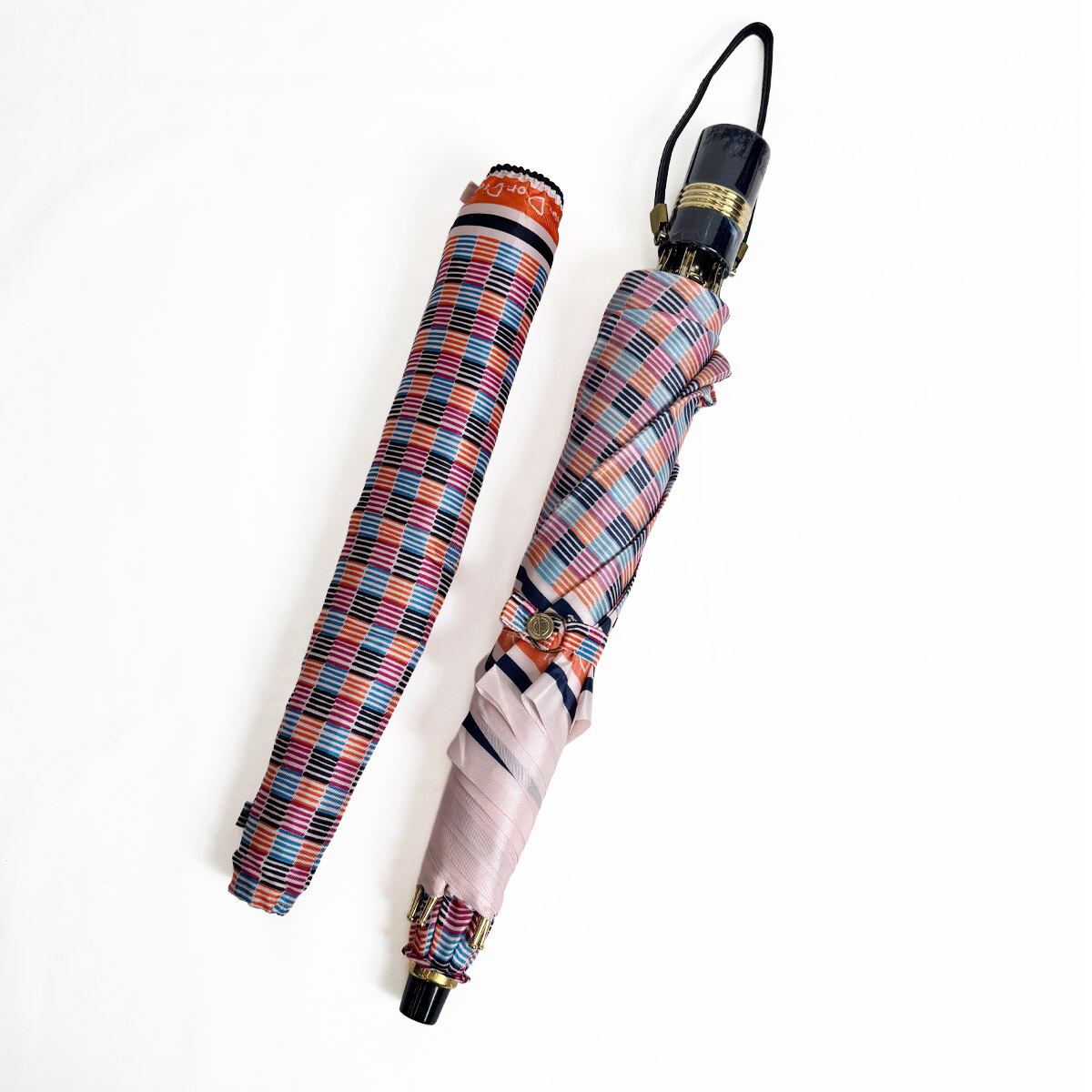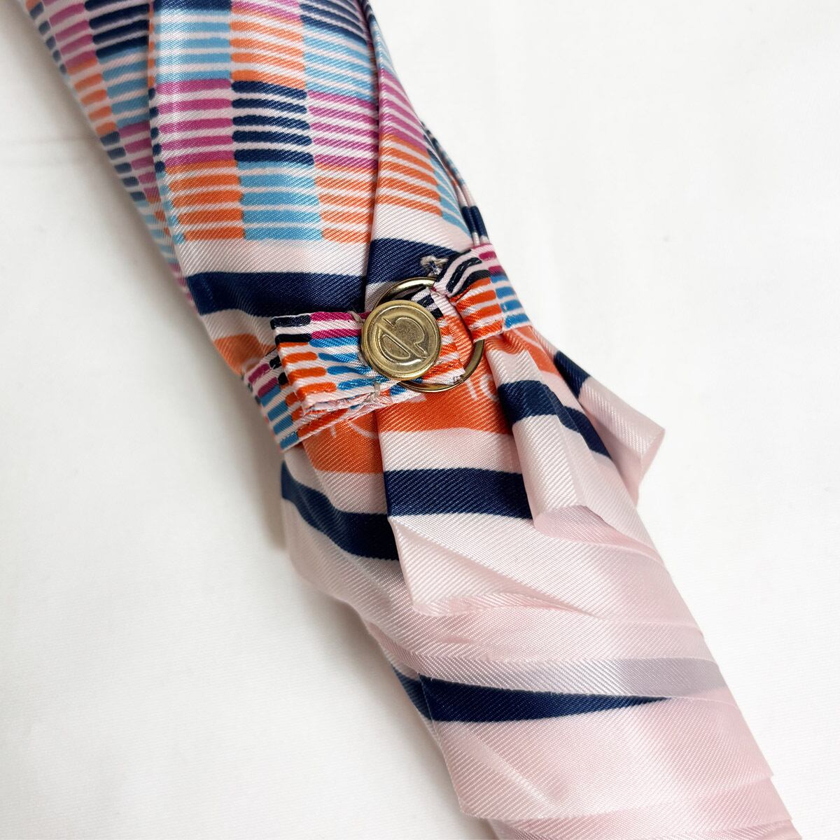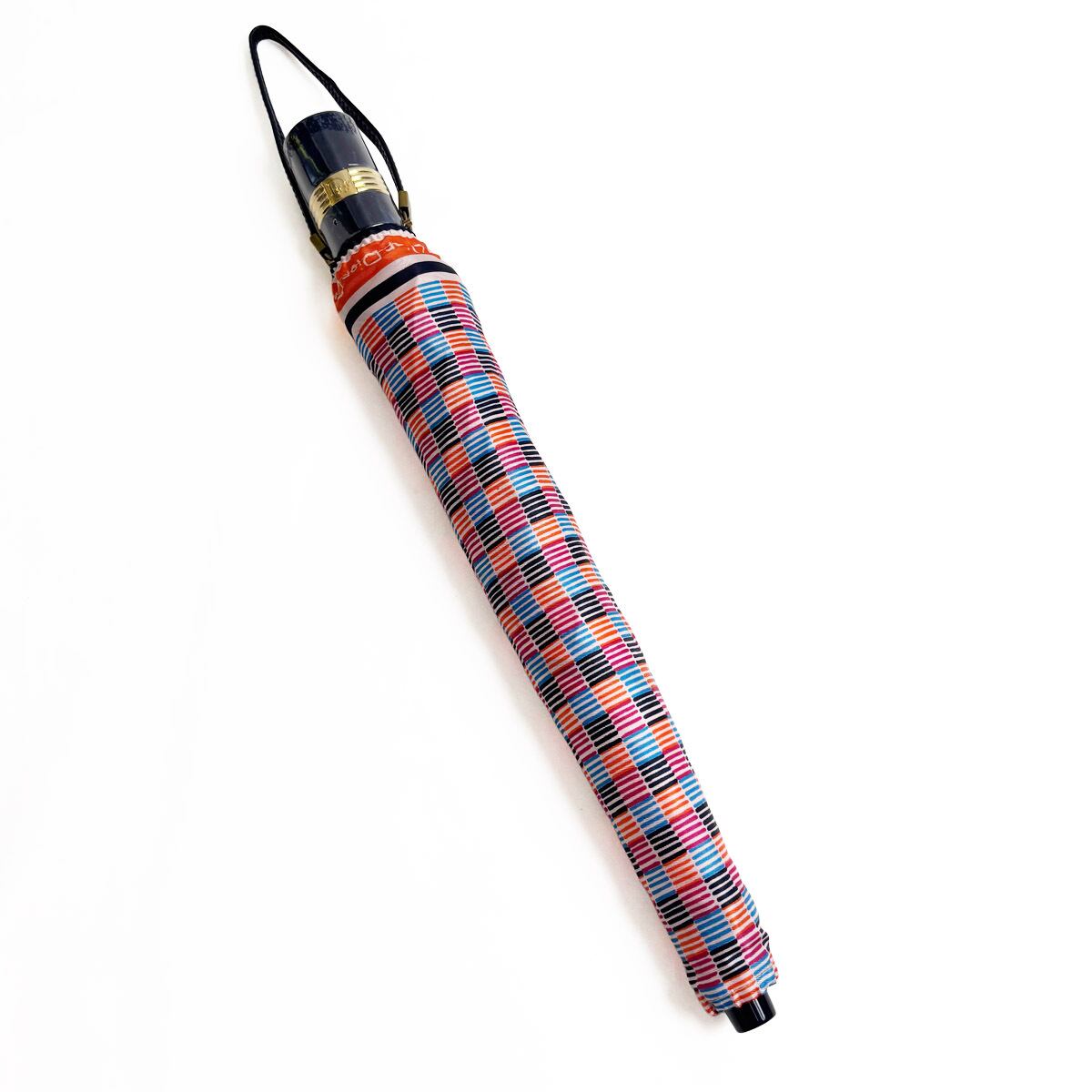 ヴィンテージならではの色彩美とゴールドロゴの気品。洗練されたマルチカラーが、どんよりとした雨空を華やかに彩ります。