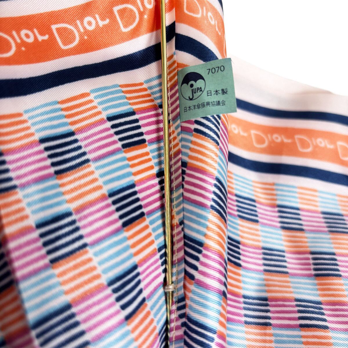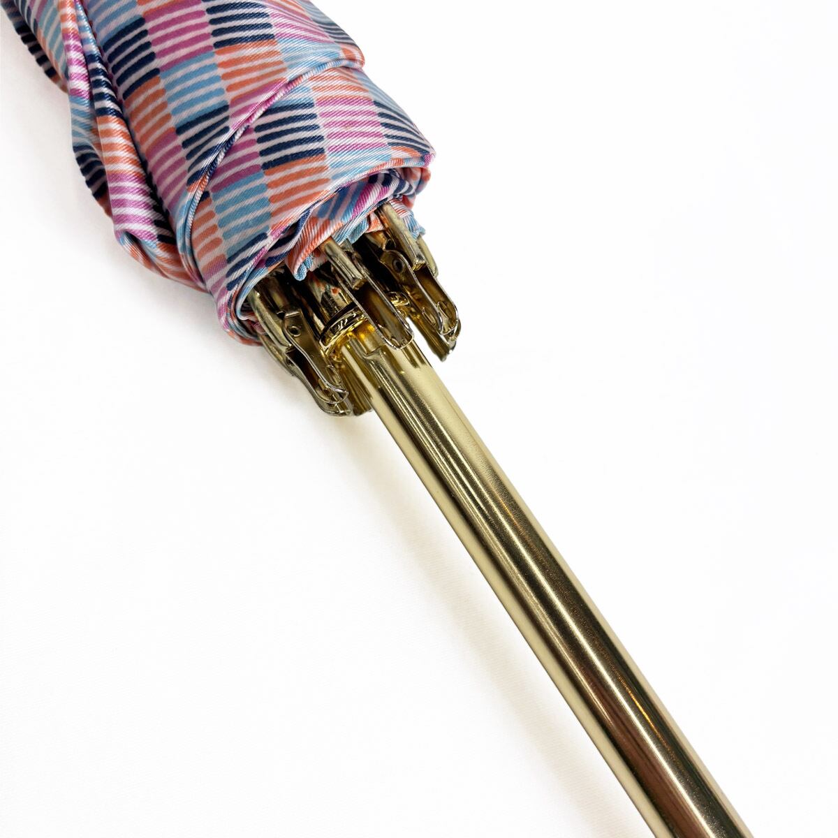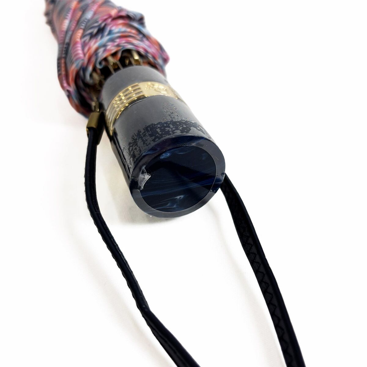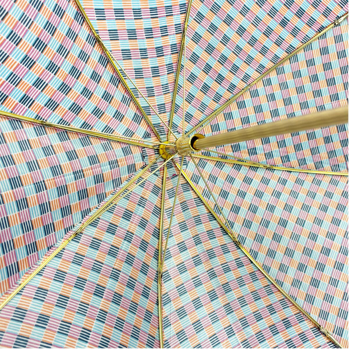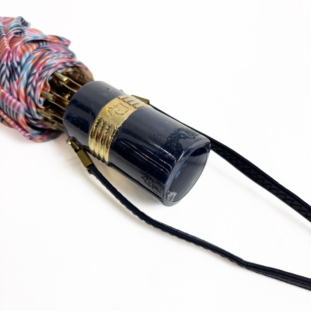 ヴィンテージならではの色彩美とゴールドロゴの気品。洗練されたマルチカラーが、どんよりとした雨空を華やかに彩ります。